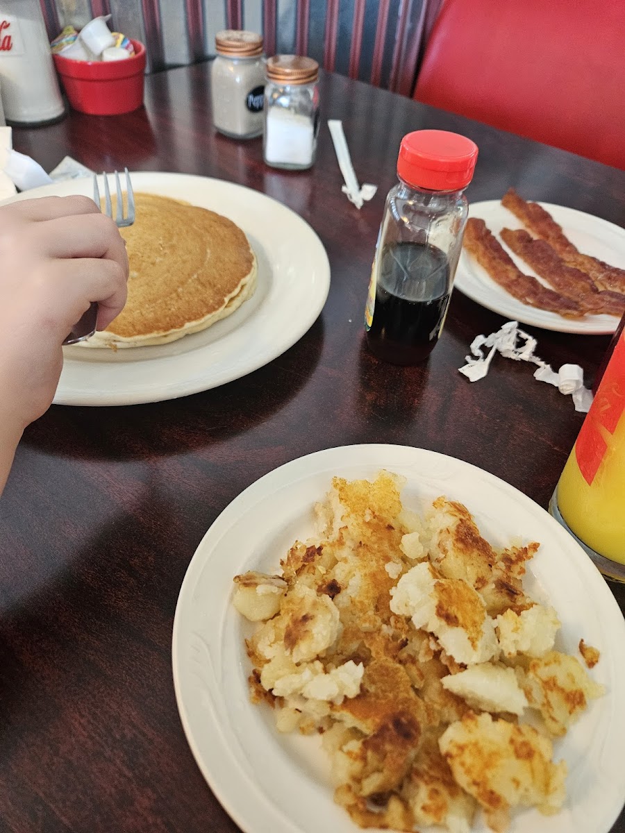 hands down BEST breakfast we've had in long time. I found them by looking for new breakfast places to check out. the location is in a tiny unassuming plaza, but it's the cutest hole in the wall gem you could ever wish for. the decor is perfect, think vintage coke cola type design. super clean. their pies are made fresh and they offer the coke from Mexico which has the sugar cane vs fructose. now our food. I had the smoked sausage. it's huge piece of that amazing favor kettle type with the best smashed and crispy potatoes and the absolute best flavor eggs ever. I opted for 2 small pancakes, also amazing flavor Instead of toast. Long review short, we saved $6 as we usually eat at darrells and got the most amazing breakfast. they are 100% our new wkly go to for breakfast.i can't wait for my friends visiting to bring them here. oh and yes, you literally can see Nancy cooking all your food. excellent waitress and help and it came out very fast. well done Nancy, if owning a great resturant was your dream, congrats bc you more than exceeded. truly made my day.